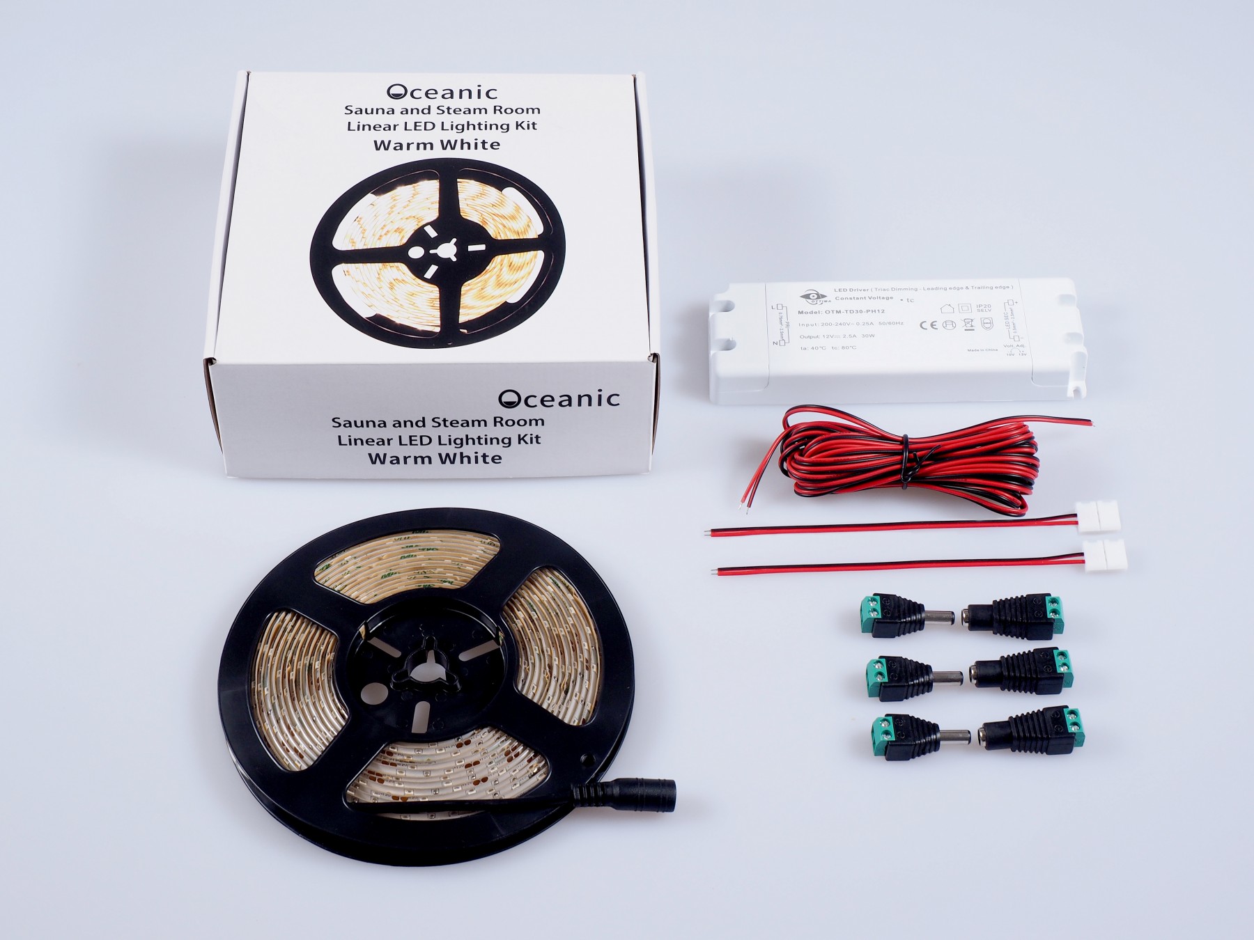 The concealed linear LED sauna lights are 4.8W/pm, 3000k warm white and are waterproof - IP65 rated.
